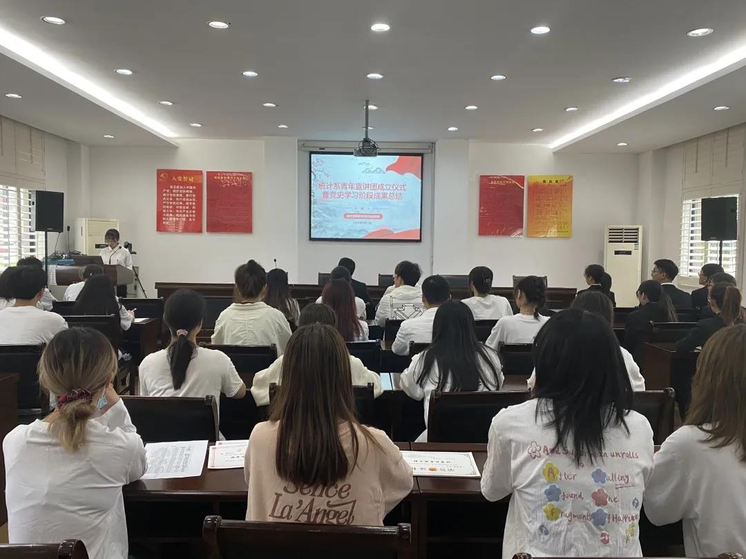 为引导广大团员青年厚植爱国情怀,让红色基因、革命薪火代代传承,扎实推进党史学习效果。2021年5月11日中午,我系团总支在28-118会议室召开“统计系青年宣讲团成立仪式暨党史学习阶段成果总结会”。参加此次会议的有统计系学生党支部书记、统计系团总支学生会指导老师李歆老师、统计系青年宣讲团成员、各支部书记、组织委员和宣传委员及我系团总支组织与宣传部成员。