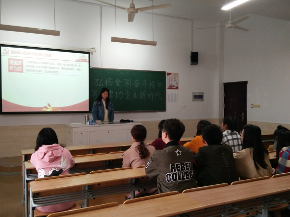 2019年4月11日中午,为持续深入学习贯彻习近平新时代中国特色社会主义思想,全面贯彻落实党的十九大精神,统计系学生党支部在7-406开展本学期第四期统学说。本次统学说主题为“弘扬爱国奋斗精神,努力建功立业新时代”,由预备党员尹诗瑶同志主持。